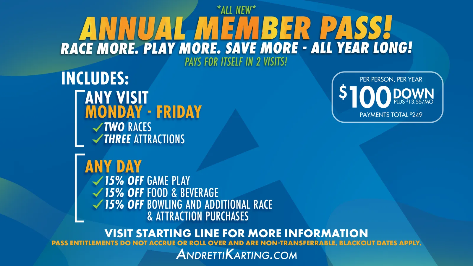 *KARTING & LASER TAG ATTRACTIONS REQUIRE A WAIVER ON FILE. IF YOU ARE UNDER THE AGE OF 18, YOUR PARENT, LEGAL GUARDIAN, OR ADULT OVER THE AGE OF 18 MUST FILL THE WAIVER OUT FOR YOU. WAIVERS ARE KEPT ON FILE AND ARE VALID FOR ONE YEAR FROM THE DATE OF SUBMISSION.