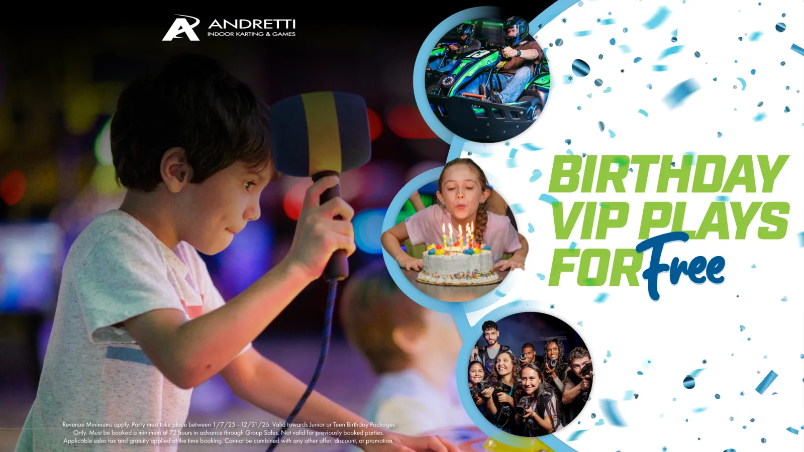 What would make your birthday party next-level epic? Giving your friends an incredible experience at Andretti Indoor Karting & Games!